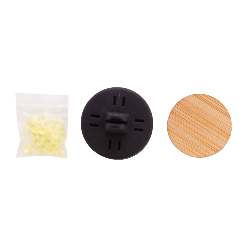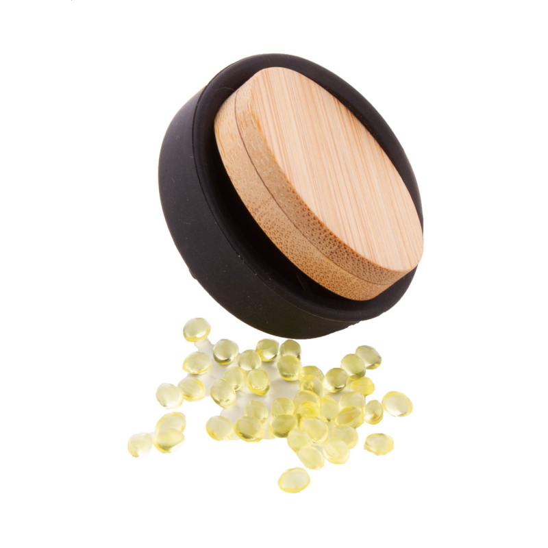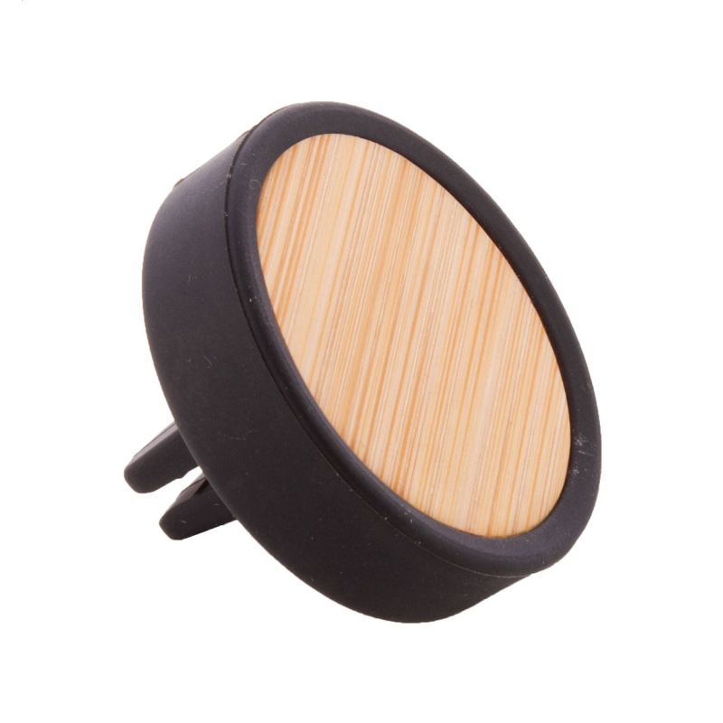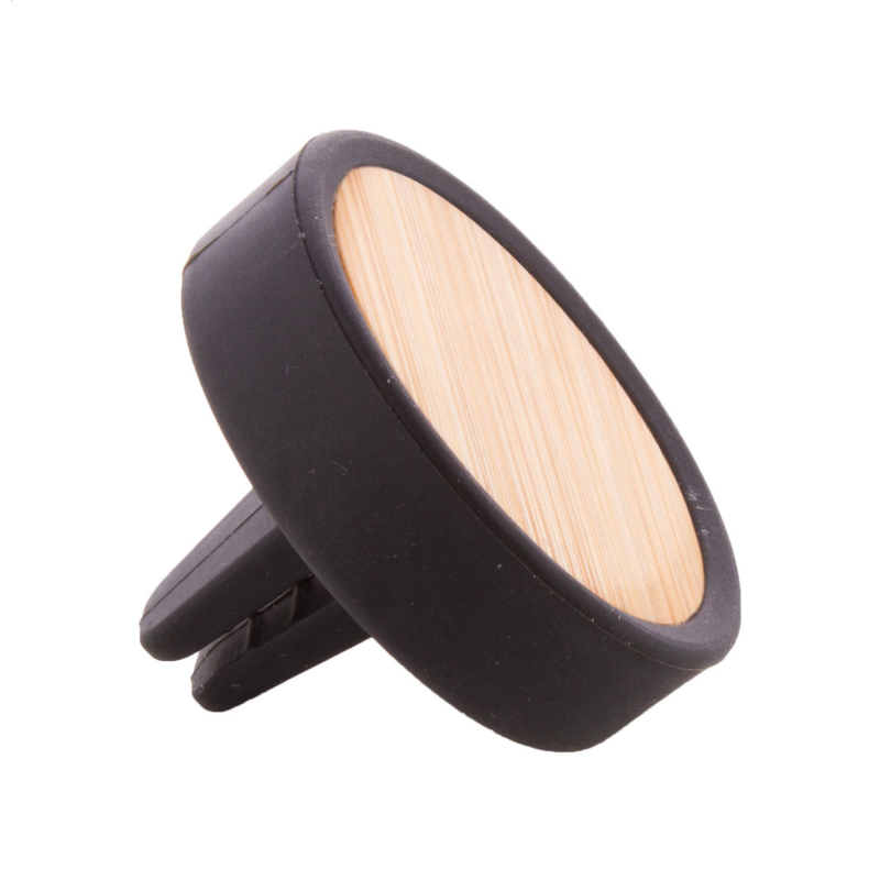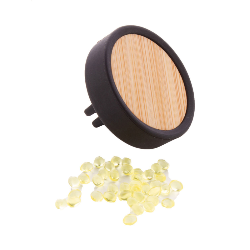 Szellőzőnyílásra rögzíthető, szilikon autóillatosító, bambusz előlappal és citromos illattal.