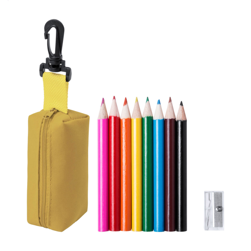 Színes ceruza szett, mely áll 8 db színes fa ceruzából (kiegyezett). Cipzáras tokban szállítjuk, 420D poliészter.