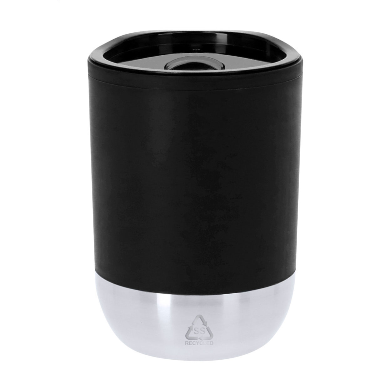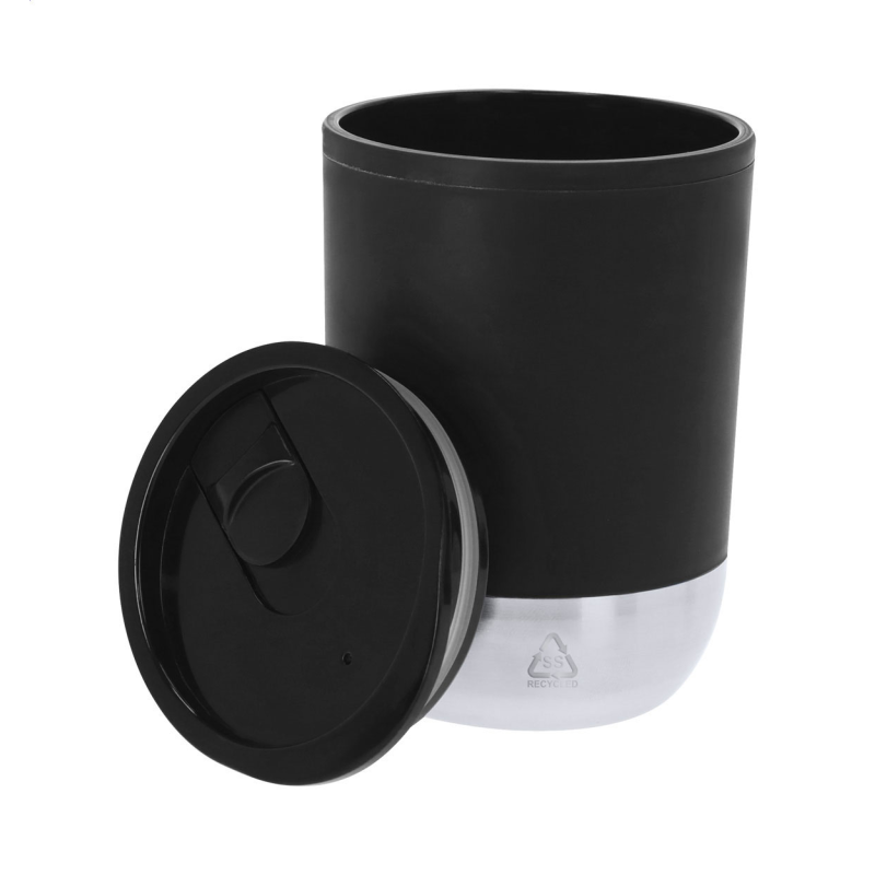 Duplafalú, újrahasznosított rozsdamentes acél thermo pohár műanyag ivófedéllel. 350 ml.