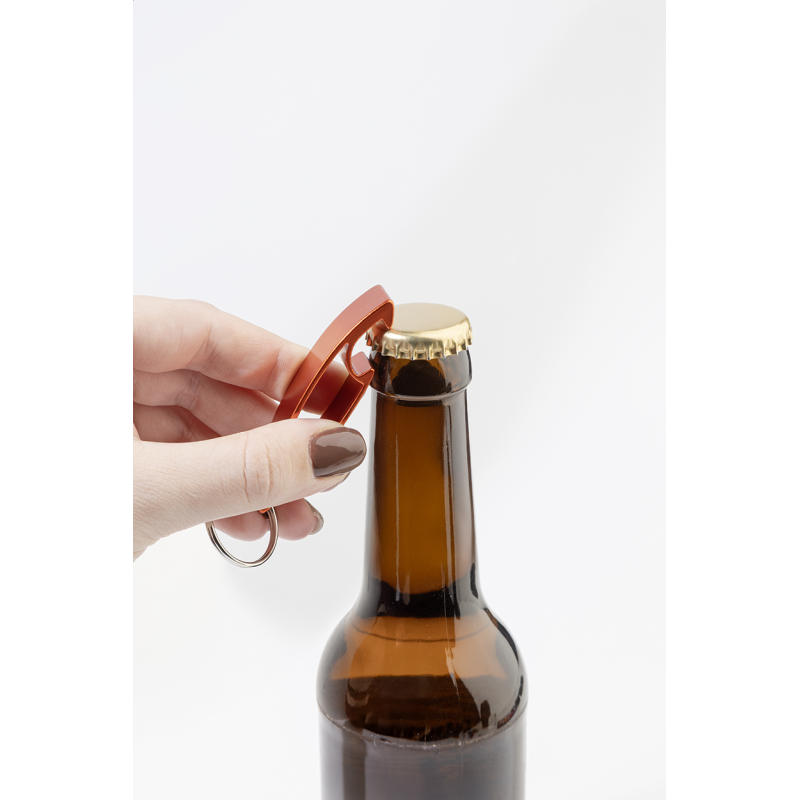 Újrahasznosított alumínium üvegnyitó fém kulcskarikával.