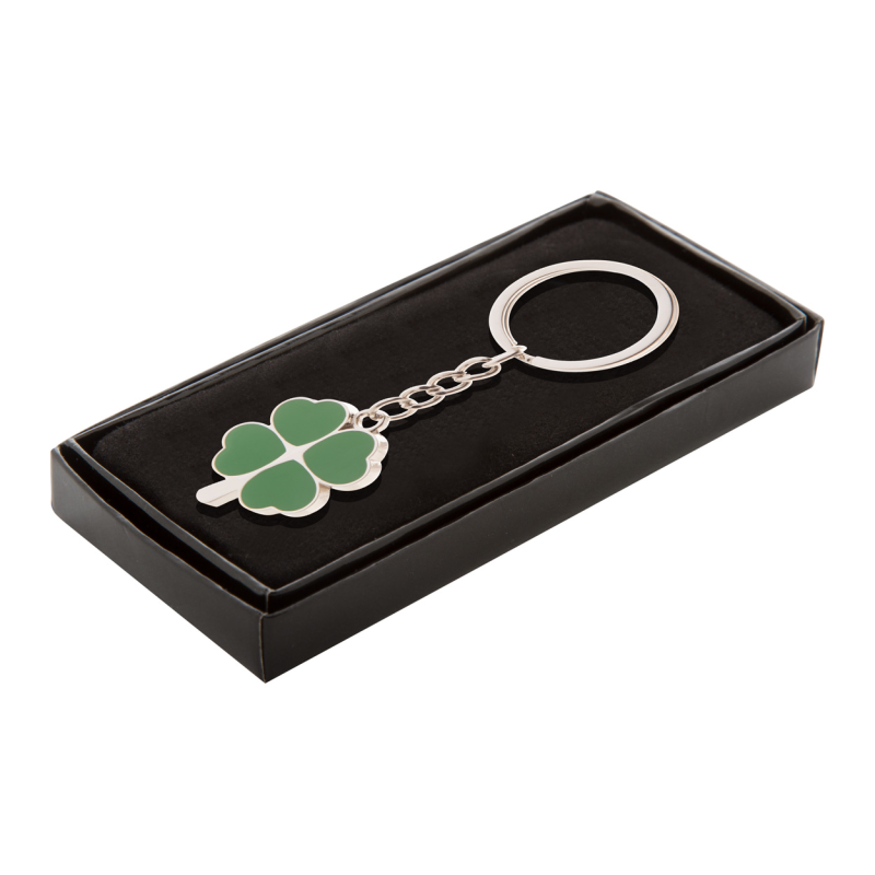Négylevelű lóhere alakú fém kulcstartó. Fekete ajándékdobozban szállítjuk.