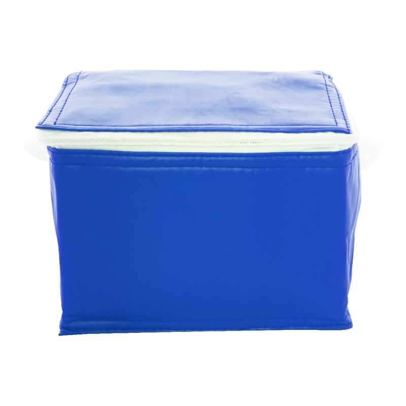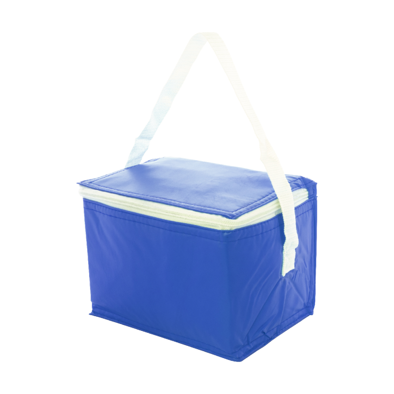 Cipzáras, non-woven hűtőtáska alumínium béléssel. 6 db 0,33L -es üdítős doboz, vagy 3 db 0,5L palack fér el benne.
