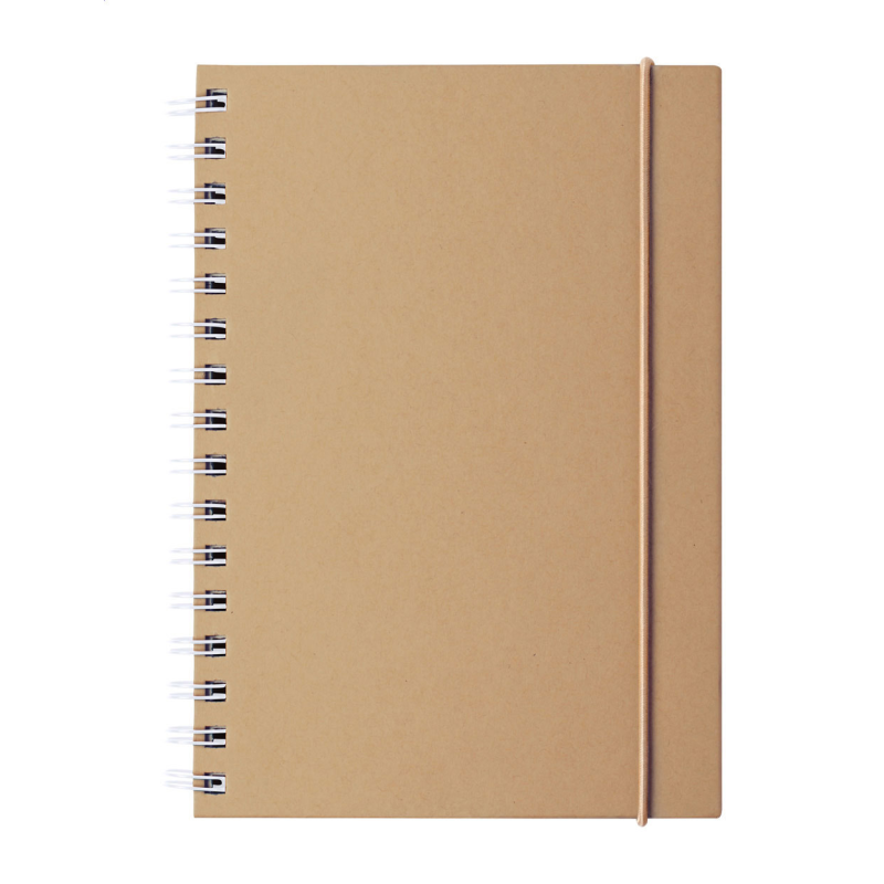 Újrahasznosított karton borítású jegyzetfüzet 80 db vonalas A5 méretű lappal és gumi szíjjal.