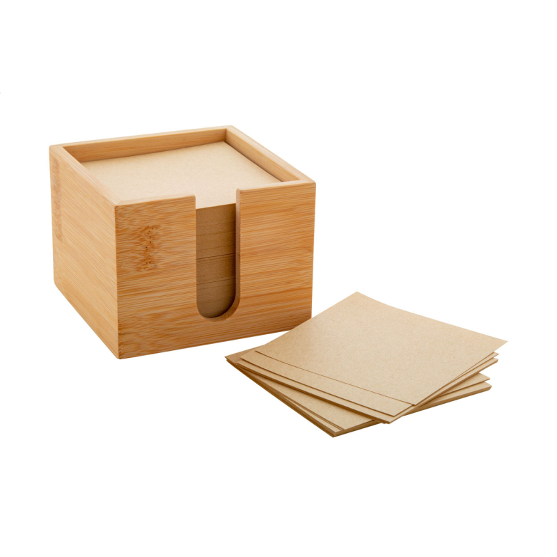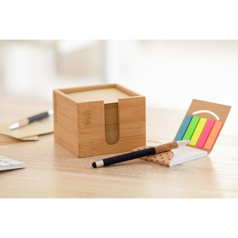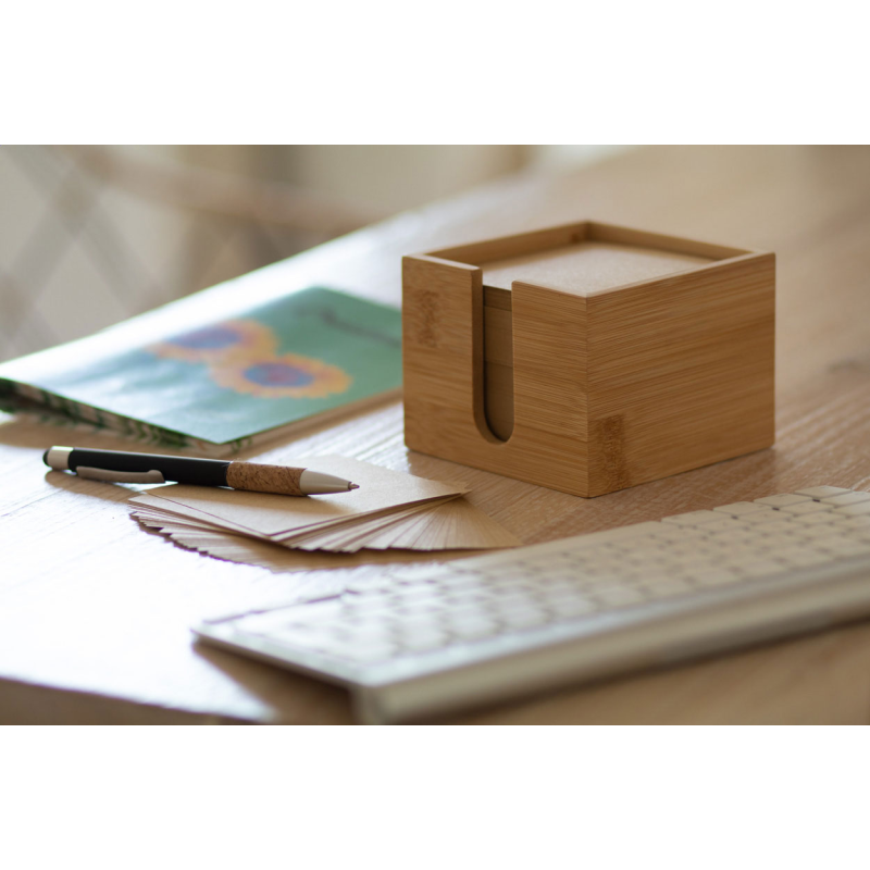 Bambusz jegyzettartó, 600 darab újrahasznosított papírból álló (80 g/m²) jegyzettömbbel.