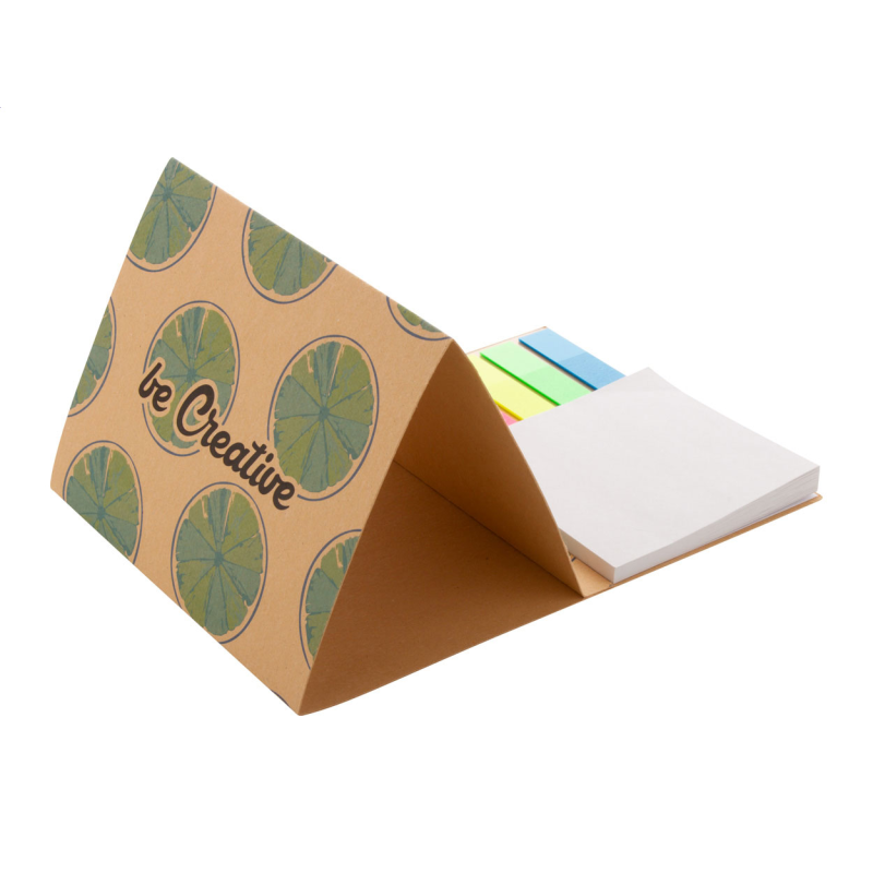 Tartalmaz 50 újrahasznosított papírból készült öntapadós lapot (75×75 mm) és 100 műanyag oldaljelölőt 5 különböző színben (44×12 mm).