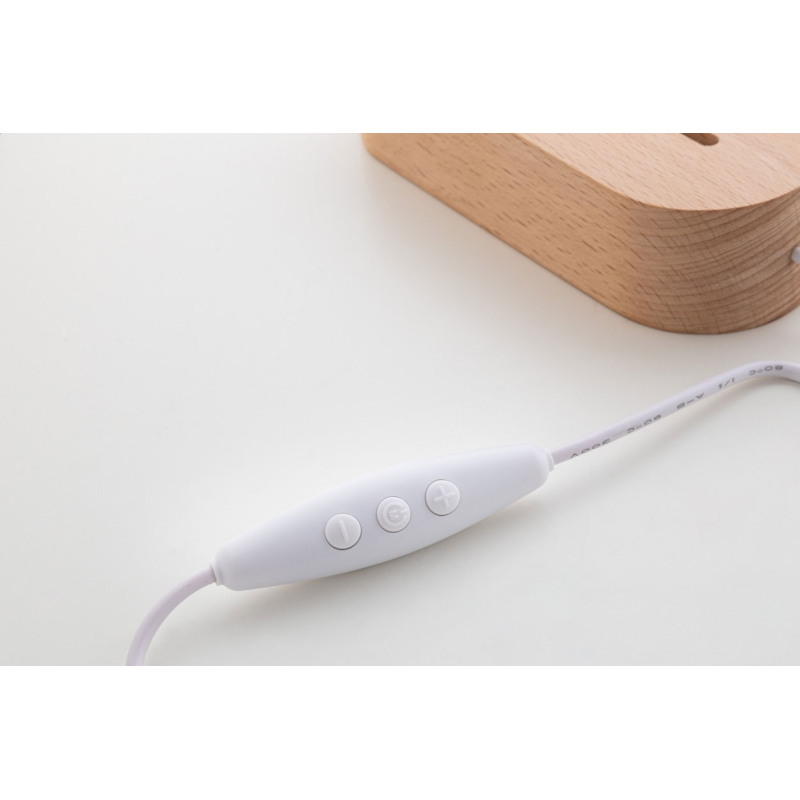 Egyedi gyártású akril trófea fa alapon, USB tápellátású többszínű LED lámpával.
