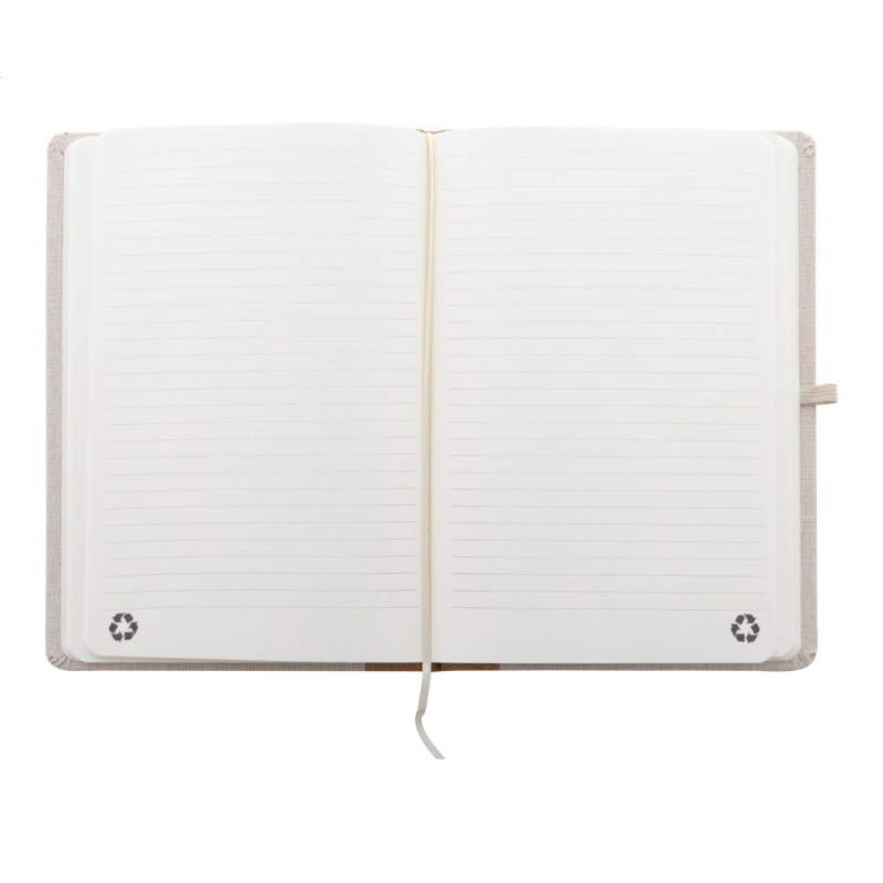 RPET poliészter borítású jegyzetfüzet 80 vonalas lappal, könyvjelzővel és gumipánttal. Méret: A5.
