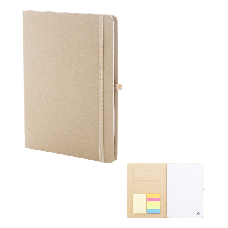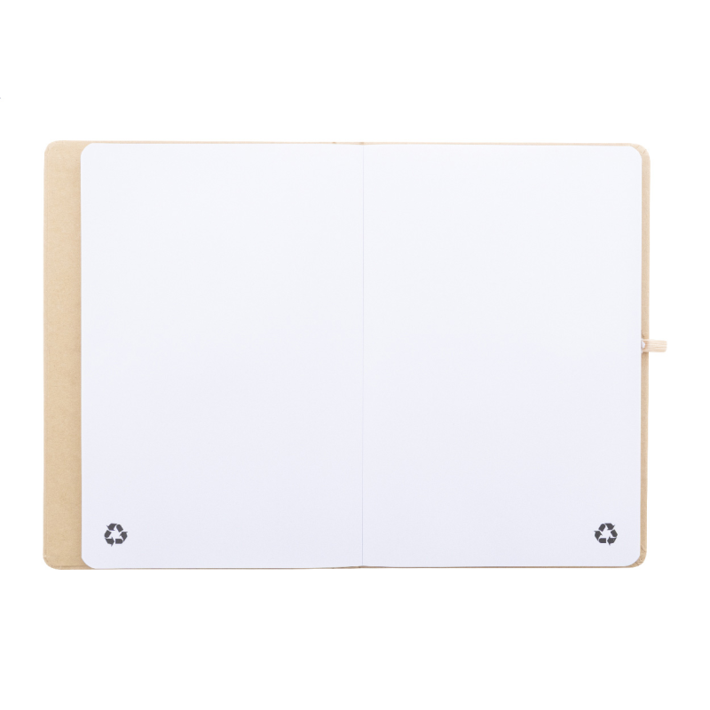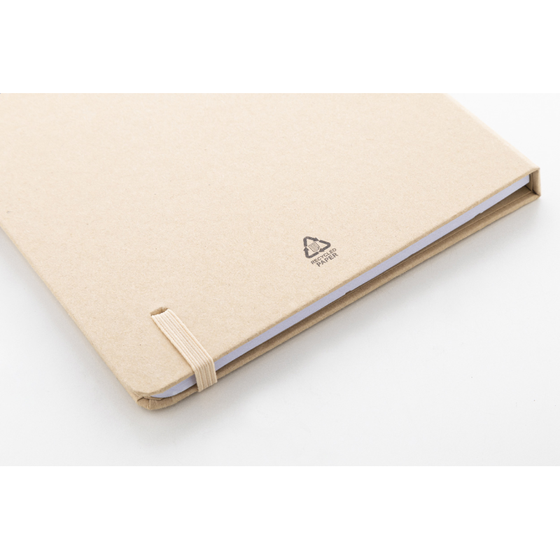 Újrahasznosított kartonból készült jegyzetfüzet 70 sima lappal.