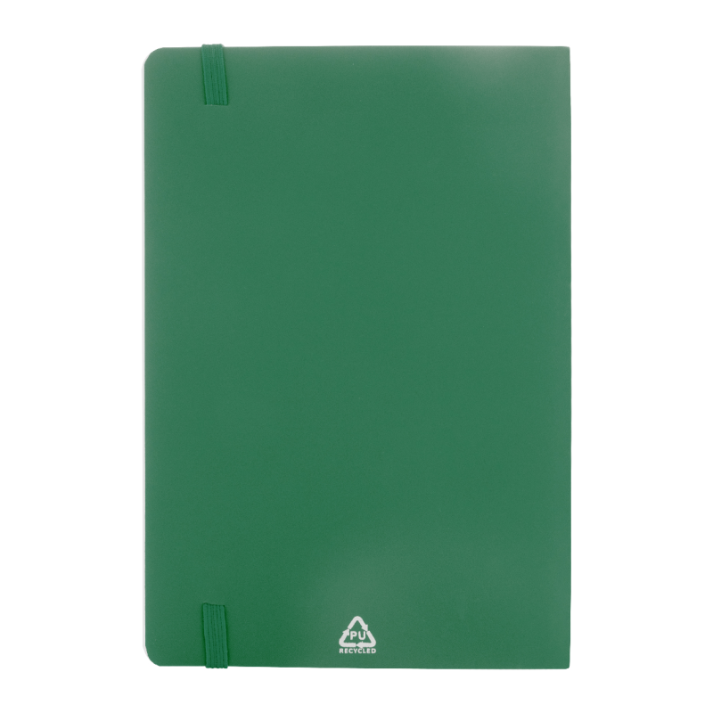 Karton borítású A/5-ös, 70 lapos spirál jegyzetfüzet, megegyező színű újrahasznosított papír golyóstollal. Kék tollbetéttel szállítjuk.