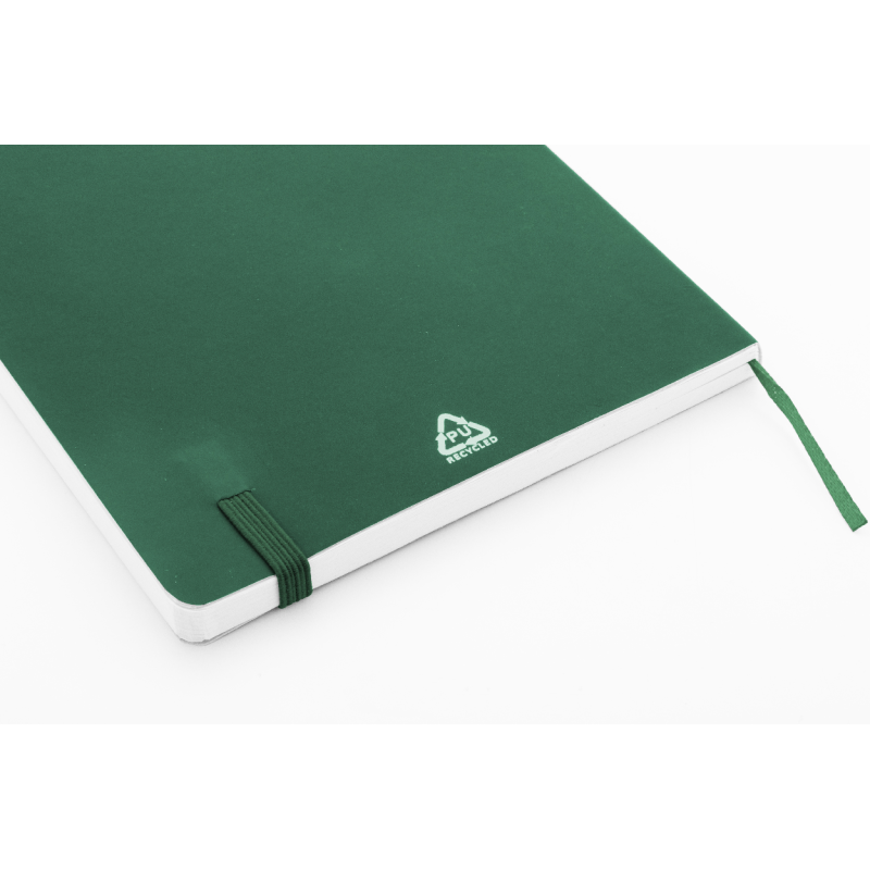 Újrahasznosított PU bőr, puha fedelű jegyzetfüzet 80 vonalas lappal, újrahasznosított papírból.