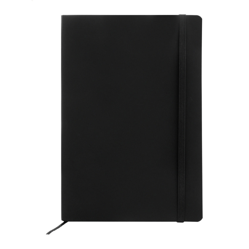 Parafa és műbőr borítású jegyzetfüzet 98 sima lappal, gumipánttal zárható. A5 méretű.