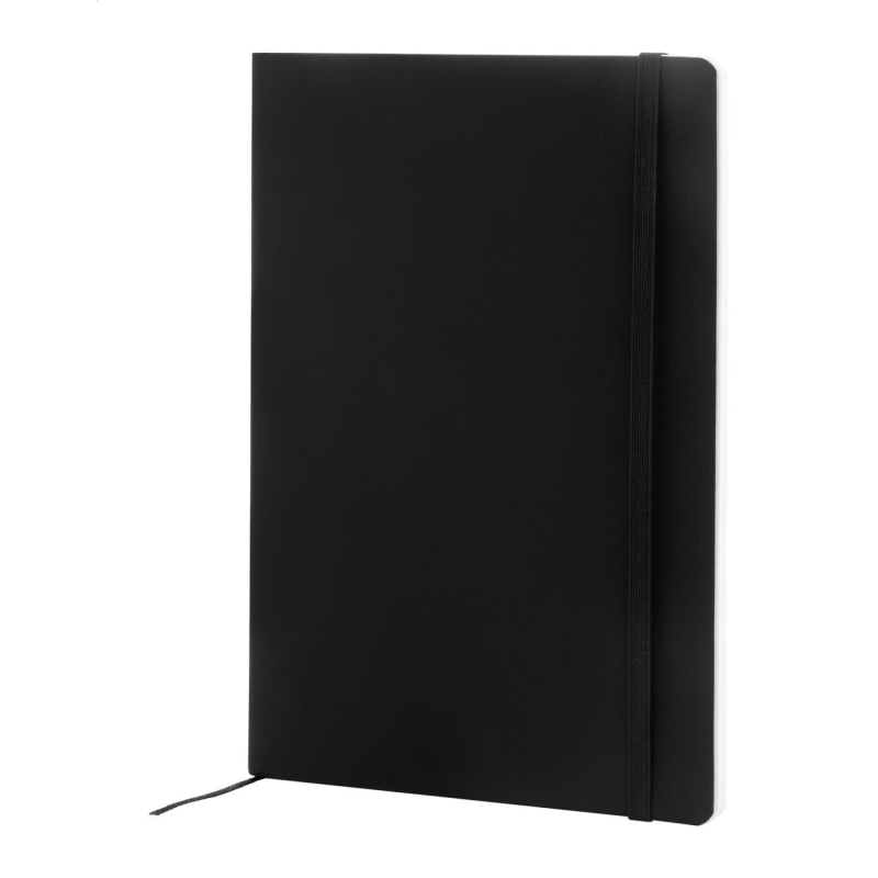 Karton borítású jegyzetfüzet 100 lappal, megegyező színű könyvjelzővel és gumipánttal.