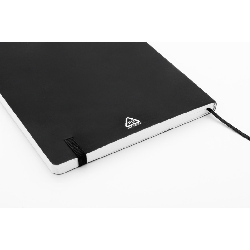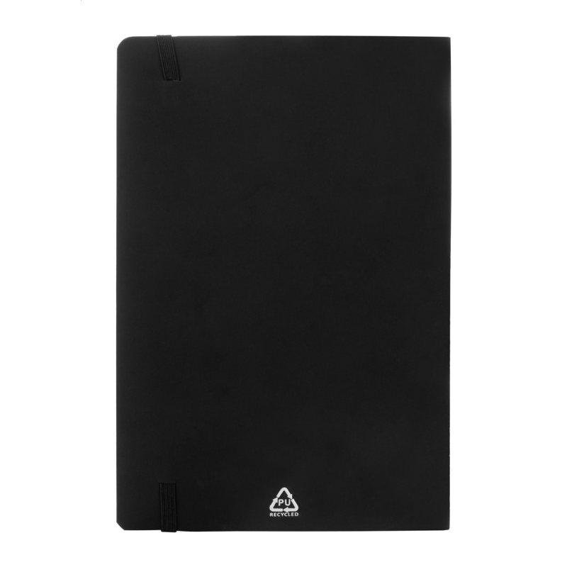 Újrahasznosított PU bőr, puha fedelű jegyzetfüzet 80 vonalas lappal, újrahasznosított papírból.