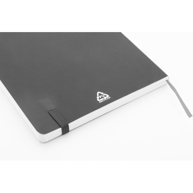 Újrahasznosított PU bőr, puha fedelű jegyzetfüzet 80 vonalas lappal, újrahasznosított papírból.