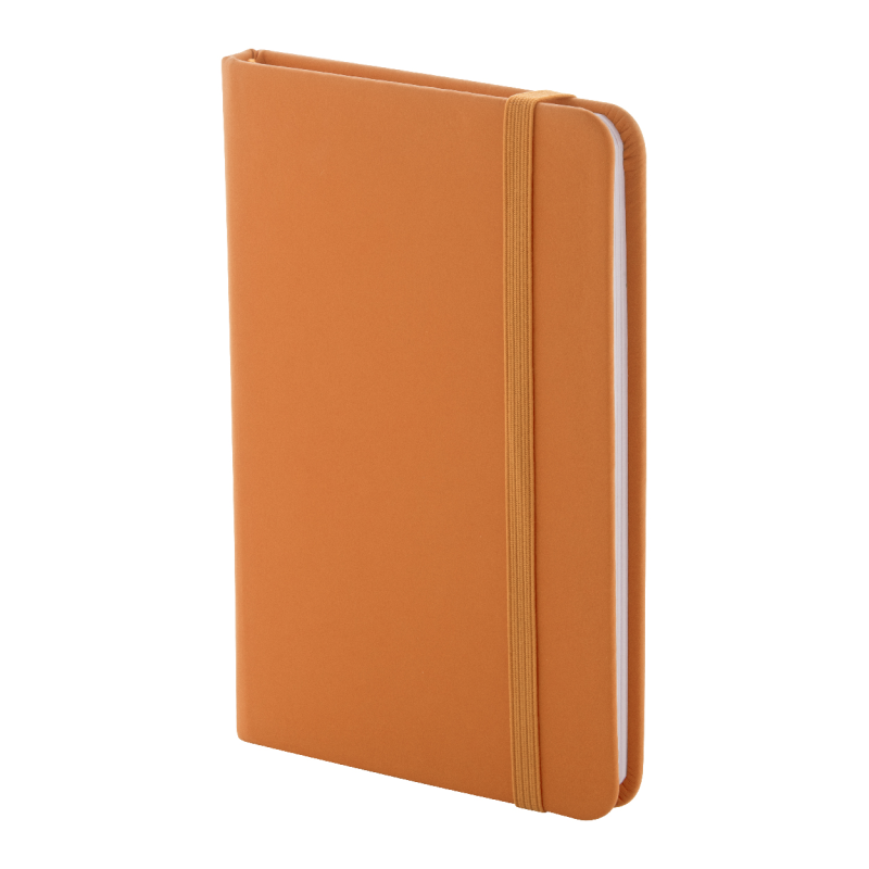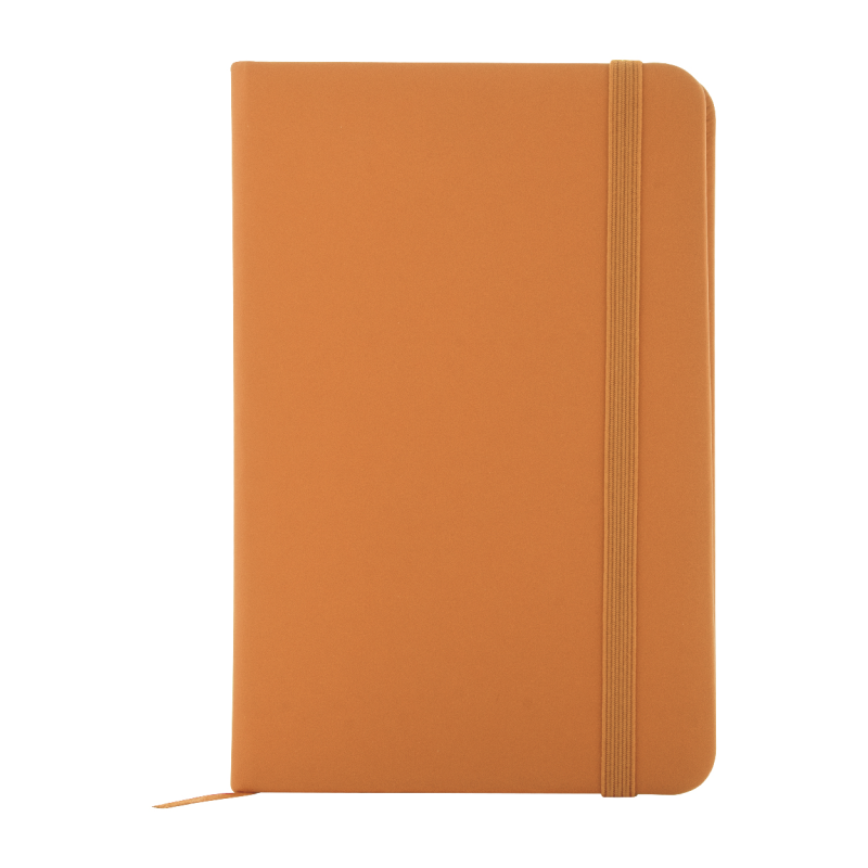 Műbőr borítású 100 oldalas jegyzetfüzet, vonalas lapokkal, gumipánttal zárható.