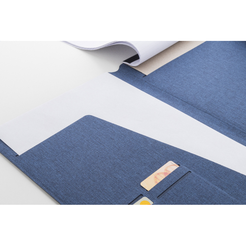 A4 méretű, RPET poliészter iratmappa több belső rendszerező zsebbel és mágneses zárral, diófa díszítéssel.