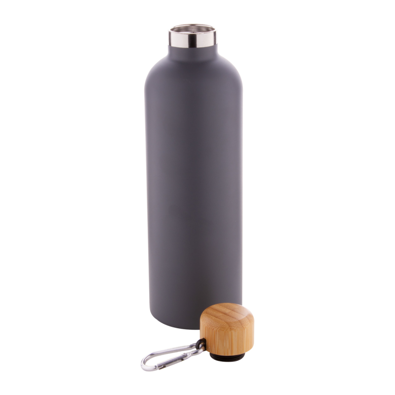 Duplafalú, újrahasznosított rozsdamentes acélból készült, vákuumszigetelt termosz bambusz tetővel, 750 ml.
