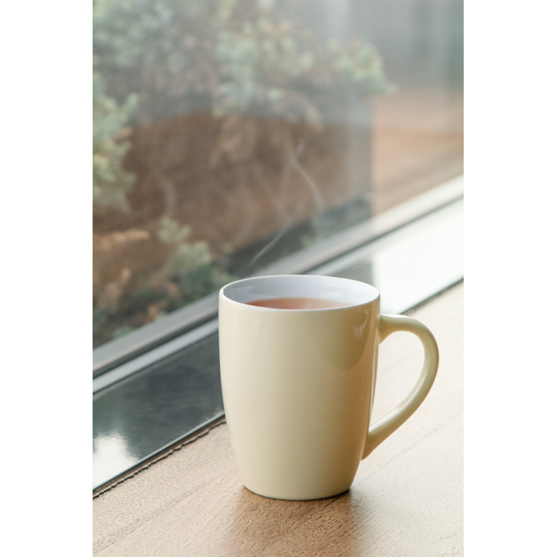 Magas minőségű színes kerámia bögre fehér belső résszel, 340 ml. Kraft papír dobozban szállítjuk.