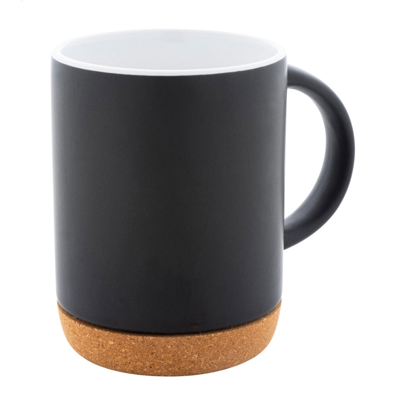 Magas minőségű kerámia bögre natúr parafa alappal. Kívül matt, belül fényes felülettel. 280 ml. Kraft papír dobozban.