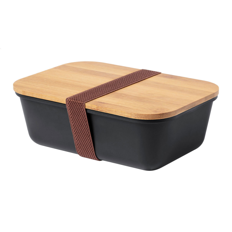 PP műanyag uzsonnás doboz, bambusz tetővel és rugalmas pánttal. 1000 ml.