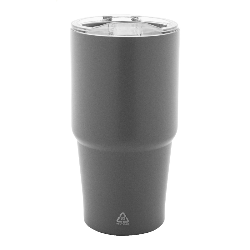 Duplafalú, újrahasznosított rozsdamentes acélból készült thermo pohár PS műanyag ivófedéllel. 600 ml.