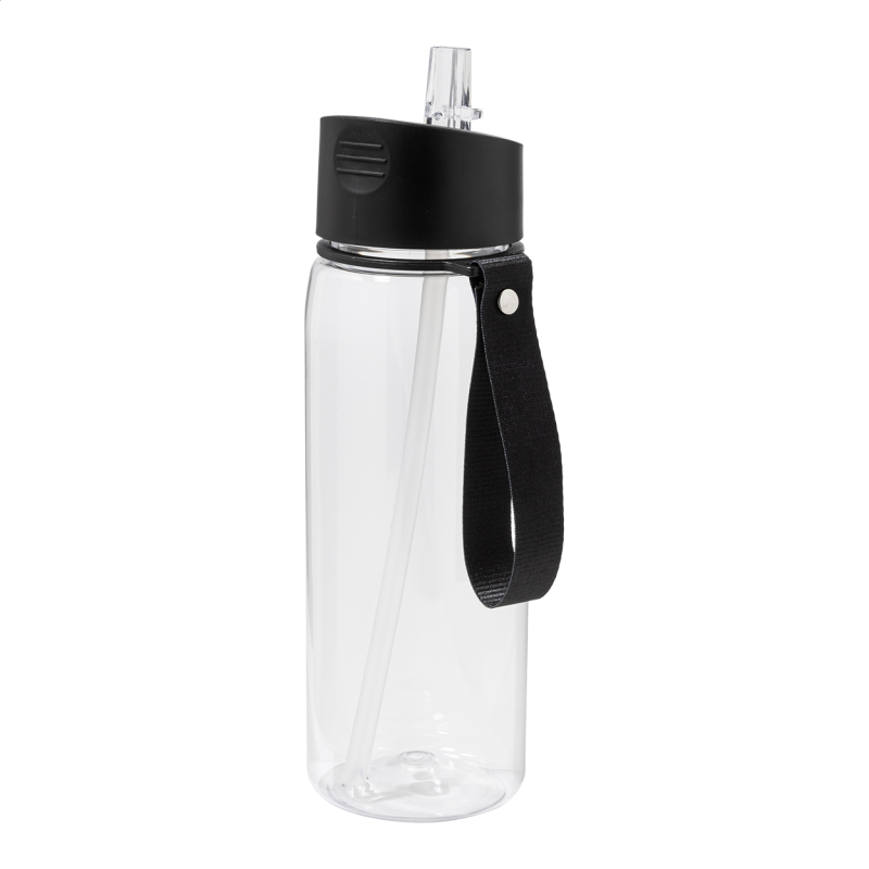 RPET poliészter hűsítő sporttörölköző RPET sportkulacsban, felpattintható PP ivófedéllel, beépített szívószállal és hordpánttal.,800 ml,BPA-mentes.