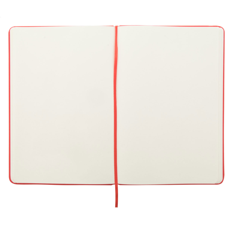 Karton borítású jegyzetfüzet 100 lappal, megegyező színű könyvjelzővel és gumipánttal.