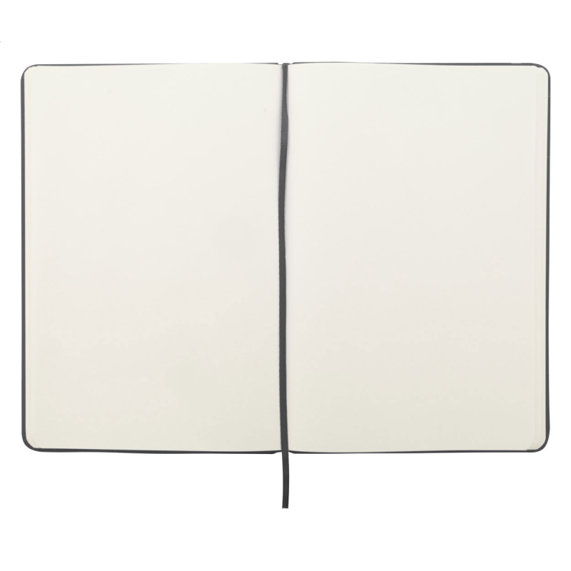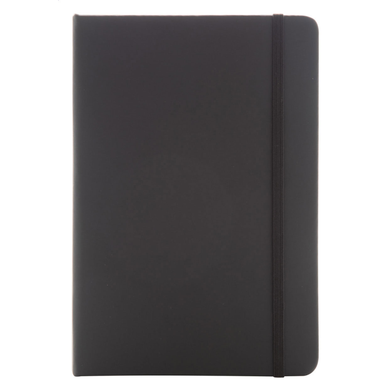 Textil hatású műbőr borítású jegyzetfüzet 80 vonalas lappal, gumipánttal zárható. A5 méretű.