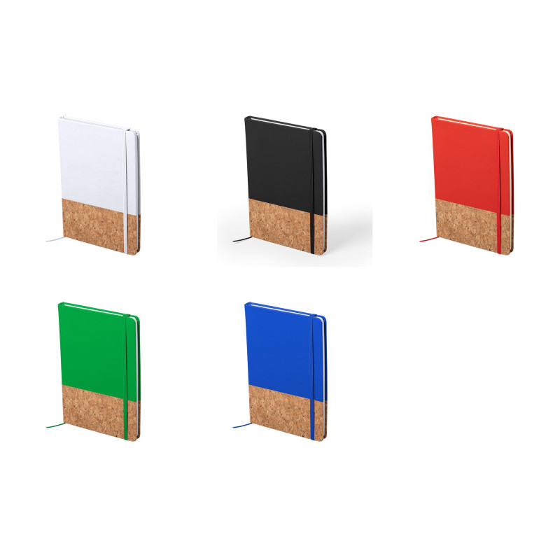 Papír borítású jegyzetfüzet 100 lappal, színezett lapélekkel valamint azonos színű könyvjelzővel és gumipánttal, A5.