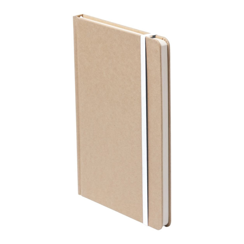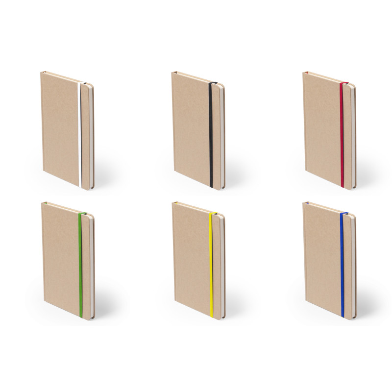 Karton borítású jegyzetfüzet 100 lappal, megegyező színű könyvjelzővel és gumipánttal.