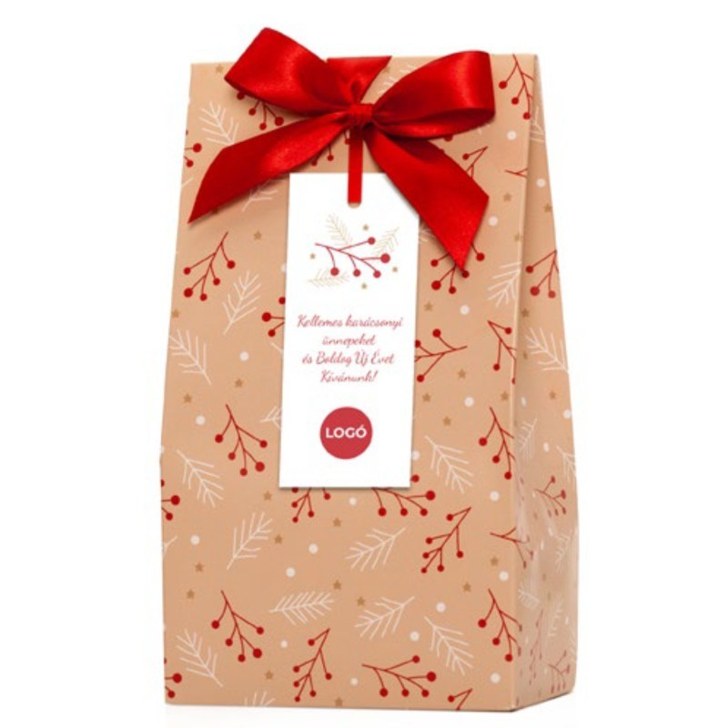 Céges ajándékcsomag karácsonyra finomságokkal. Télapó finomságait összegyűjtöttük egy kedves kis ajándékcsomagban.