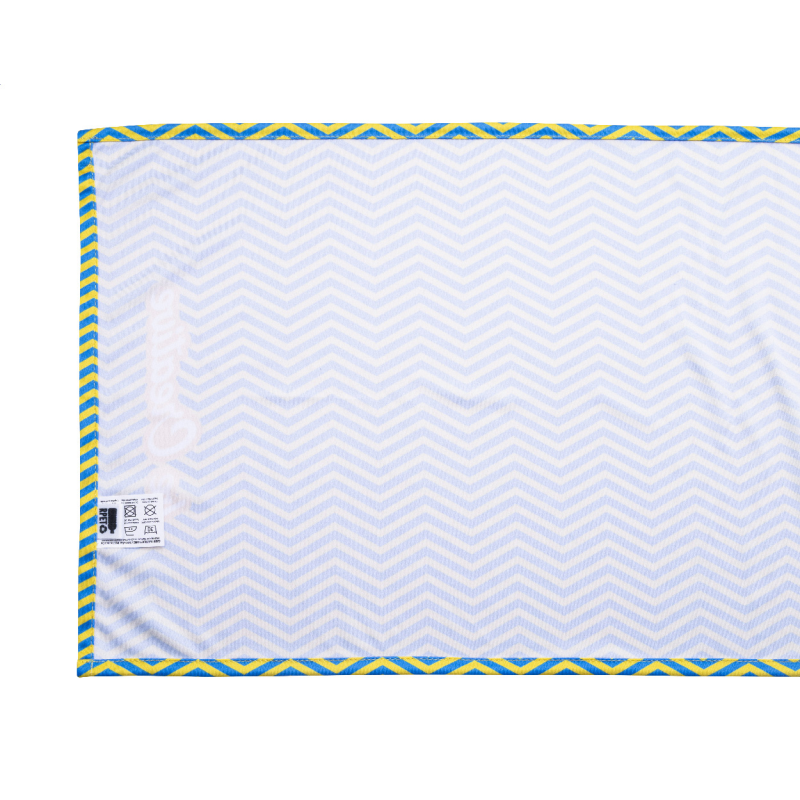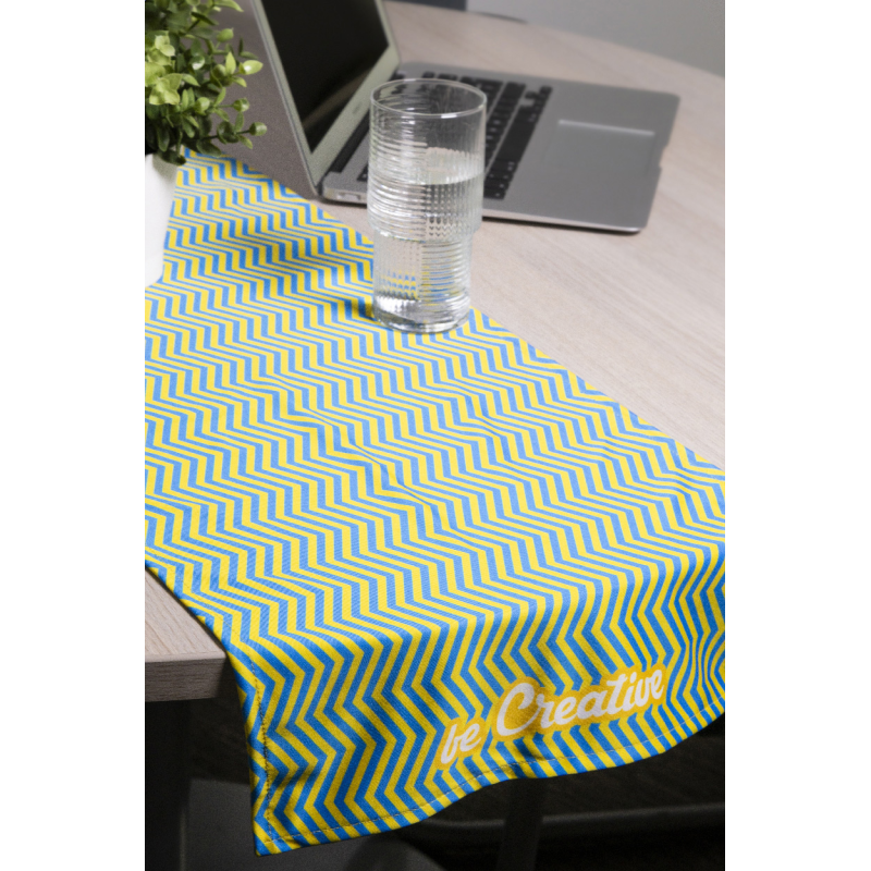 Egyedi gyártású, RPET mikroszálas (170 g/m²) asztali futó, teljes felületén szublimációs nyomtatott grafikával.