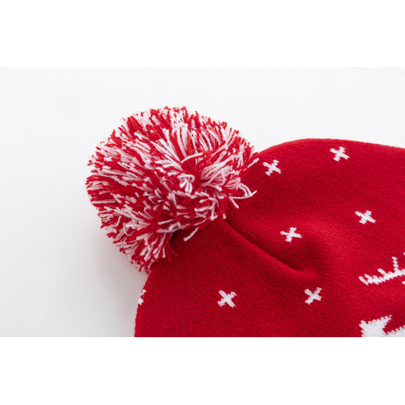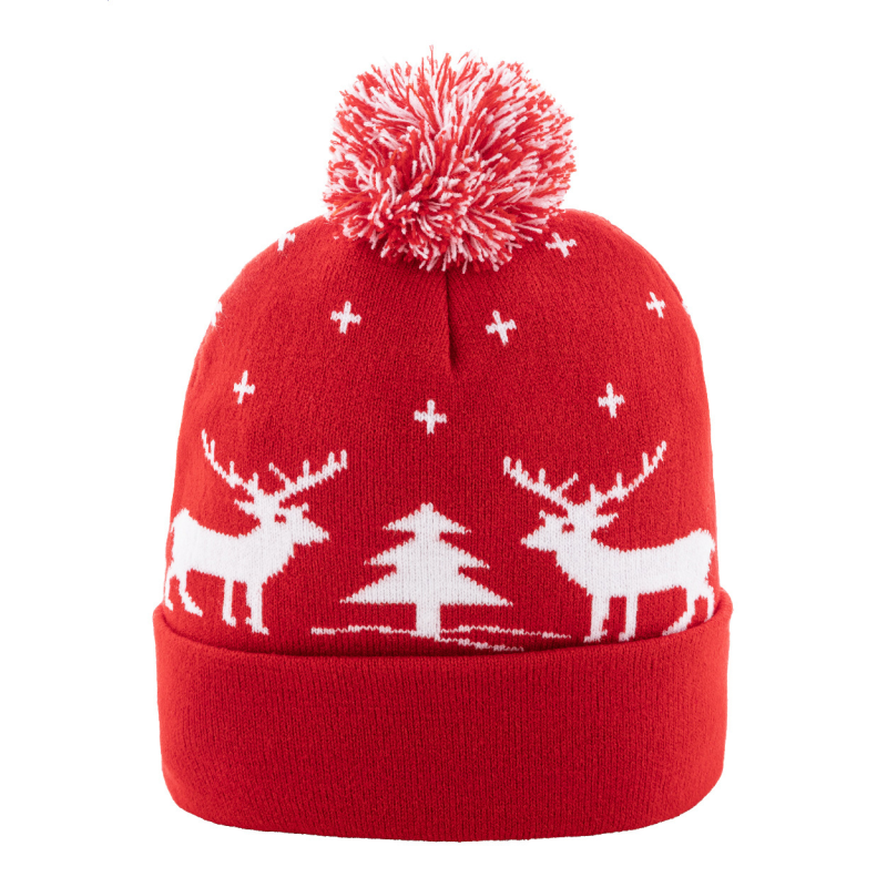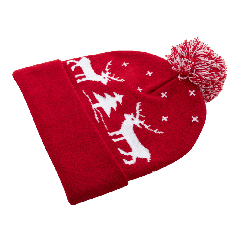Kötött karácsonyi sapka akrilból, mandzsettával és bojttal.