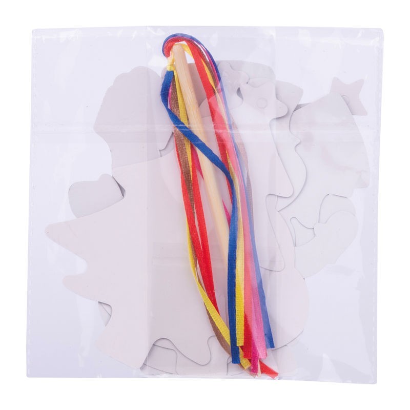 Karácsonyi motívumokból álló karcolható papír dísz szett akasztóval.
