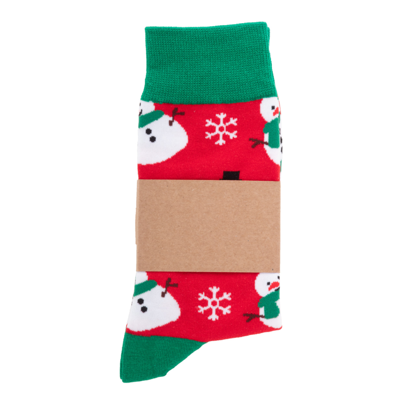 Egy pár karácsonyi zokni 73% pamutból, 25% RPET poliészterből és 2% spandexből. Emblémázható kraft papír csomagolással.