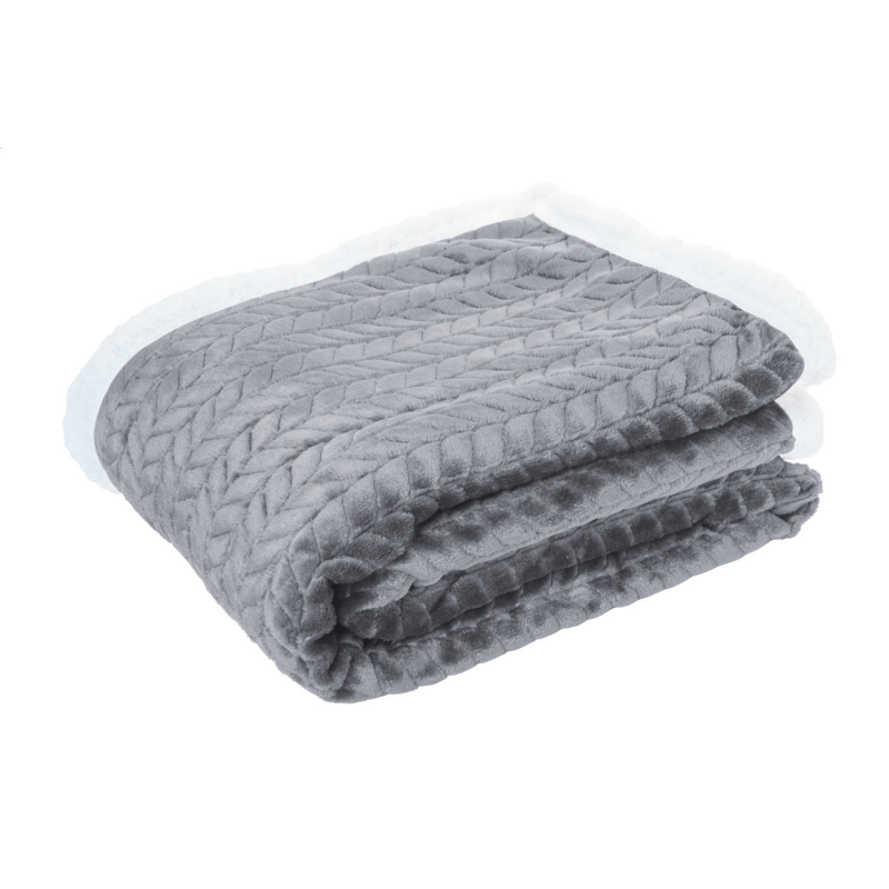 Kétrétegű RPET takaró jacquard mintázattal. 240 g/m² RPET flanel gyapjúval és kifordítható 210 g/m² RPET sherpagyapjú béléssel.