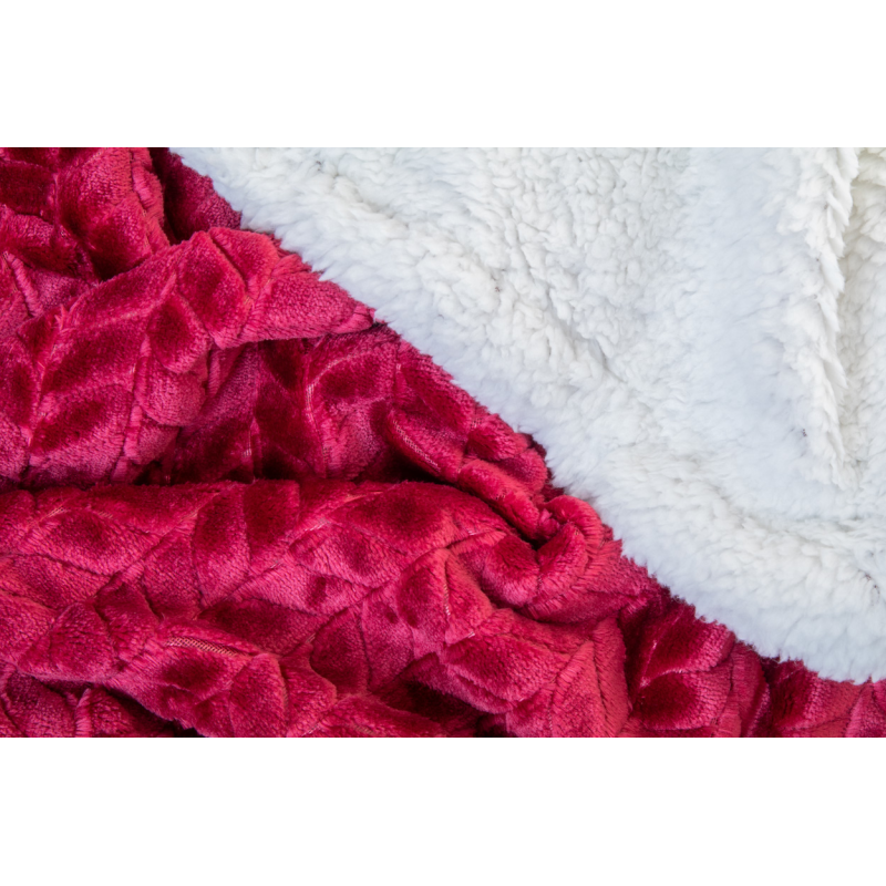 Kétrétegű RPET takaró jacquard mintázattal. 240 g/m² RPET flanel gyapjúval és kifordítható 210 g/m² RPET sherpagyapjú béléssel.