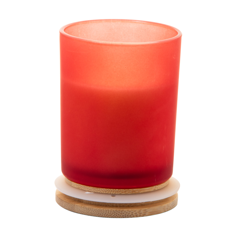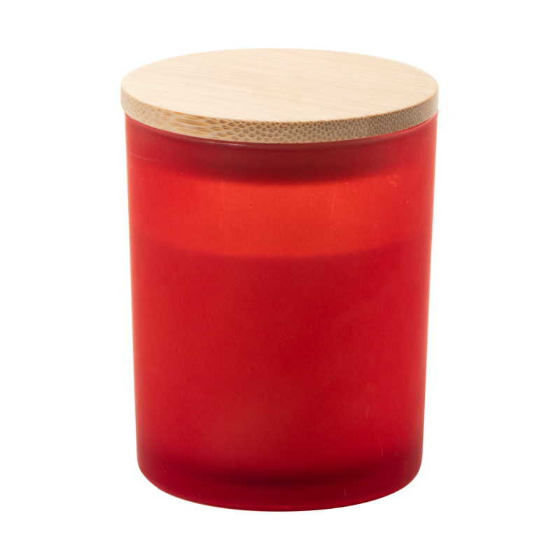Növényi alapú illatgyertya homokfúvott üvegtartóban, bambusz tetővel. 200 gramm viaszt tartalmaz.