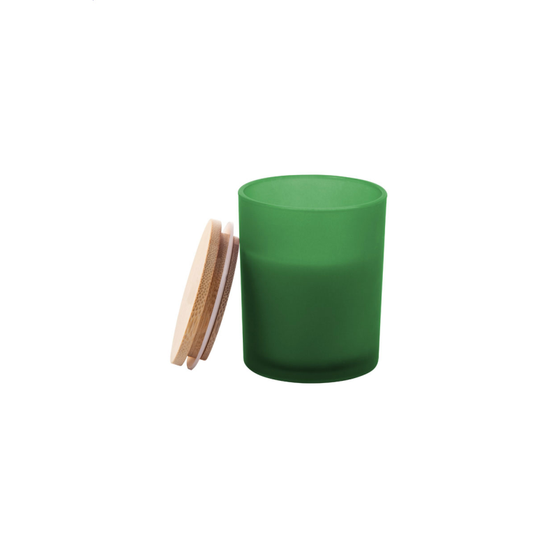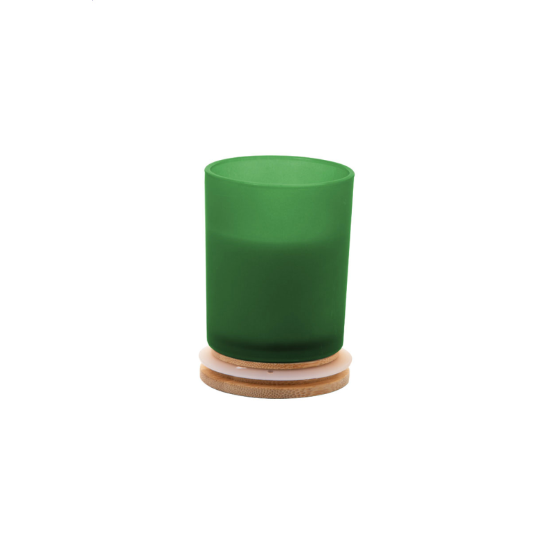 Növényi alapú illatgyertya homokfúvott üvegtartóban, bambusz tetővel. 200 gramm viaszt tartalmaz.