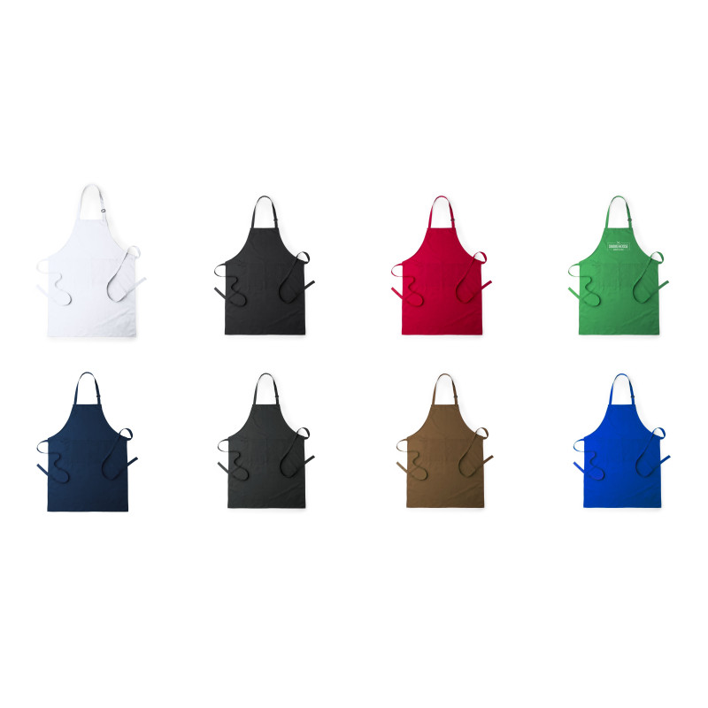 Színes kötény elöl zsebbel. Anyaga: 80% poliészter, 20% pamut.
