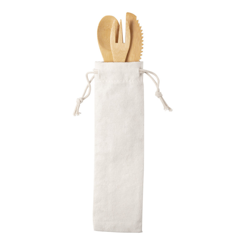 3 darabos bambusz evőeszköz szett pamut zacskóban.