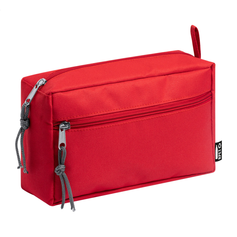 RPET kozmetikai táska 2 cipzáras rekesszel, 600D RPET poliészter. Megkülönböztető RPET címkével.