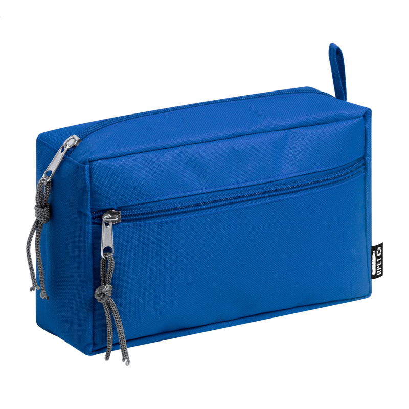 RPET kozmetikai táska 2 cipzáras rekesszel, 600D RPET poliészter. Megkülönböztető RPET címkével.