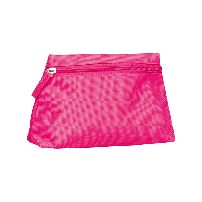 Trapéz alakú, cipzáras kozmetikai táska, 600D poliészter anyagból.