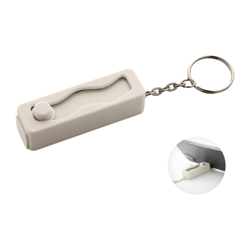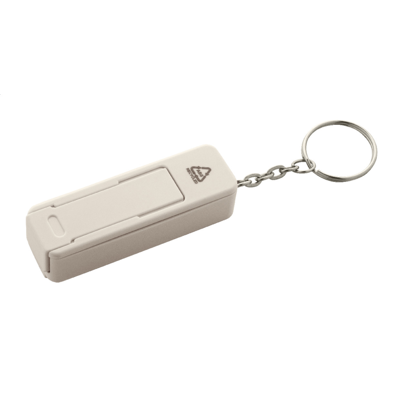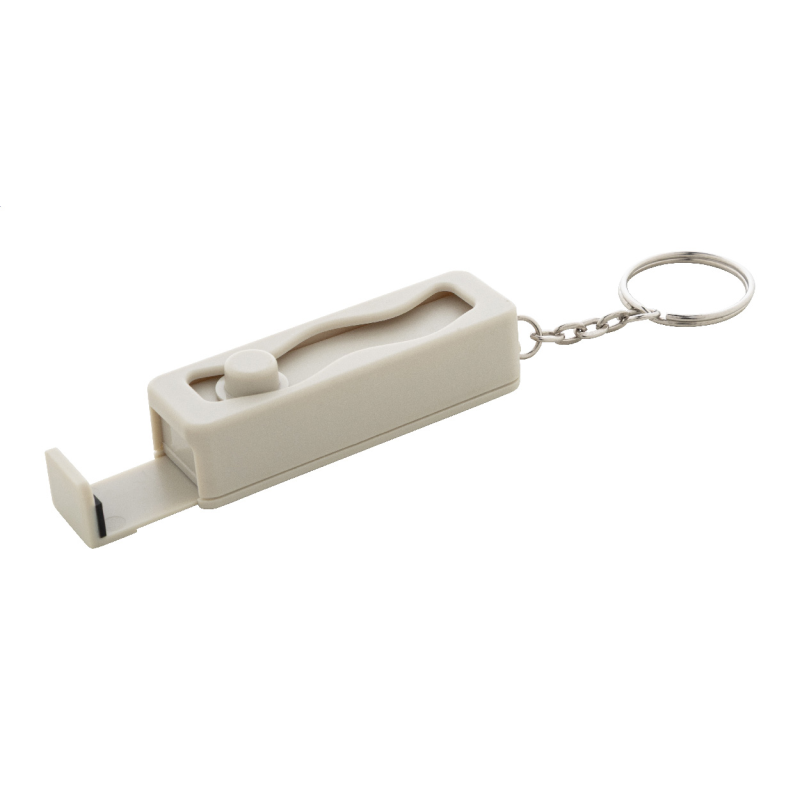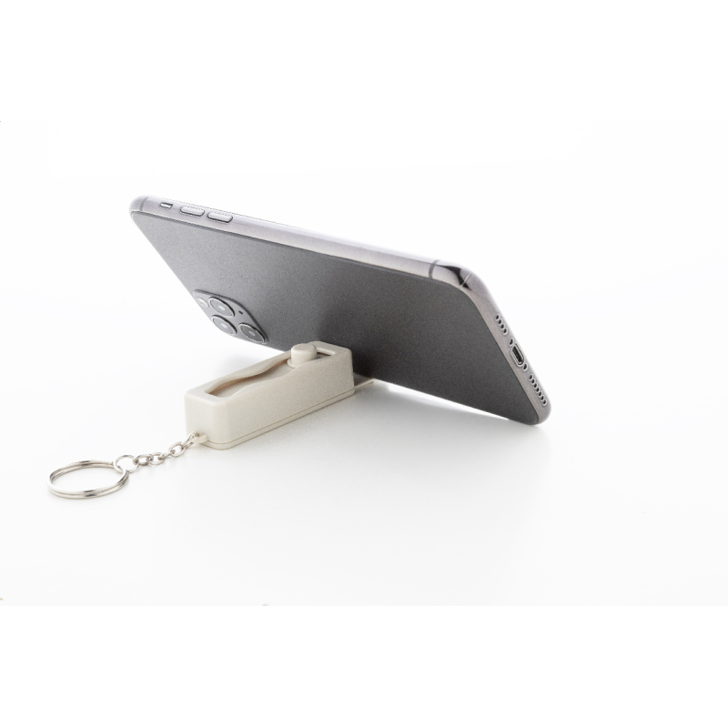 Újrahasznosított ABS műanyag antistressz játék kulcstartó beépített mobiltartóval és fém karikával.