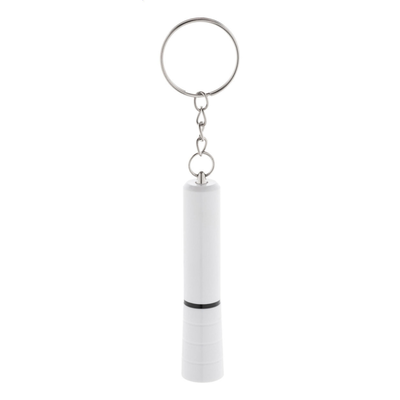 Újrahasznosított ABS műanyag, mini zseblámpa 1 LED-del, fémes felülettel és fém kulcstartóval. Gombelemmel szállítjuk.
