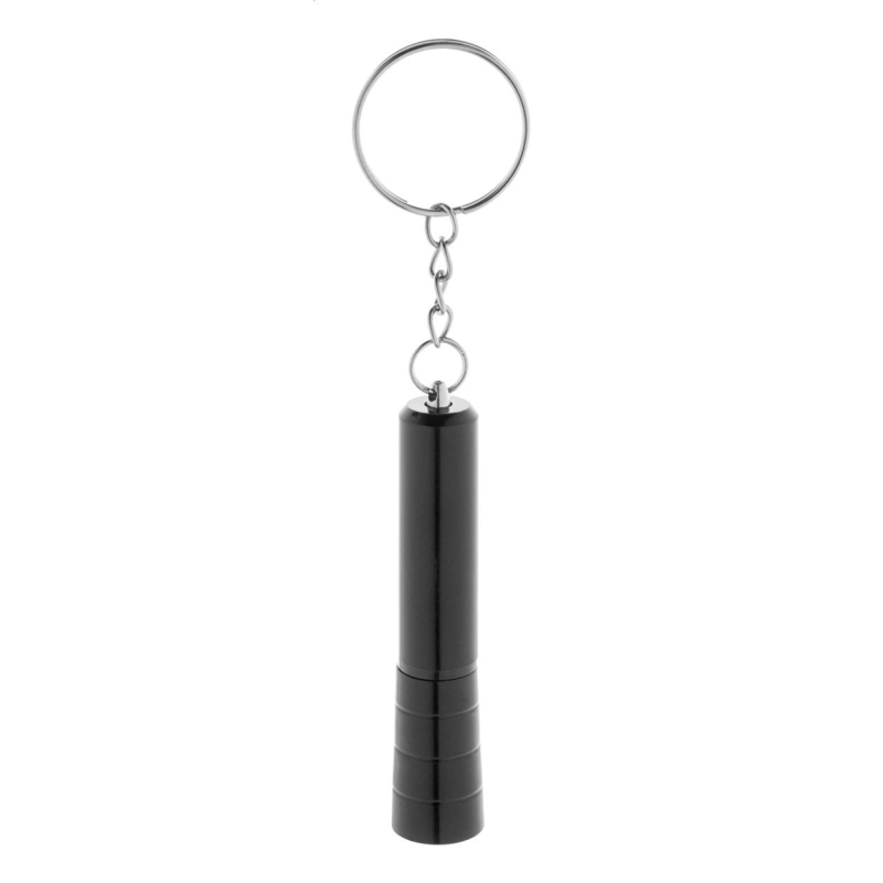 Újrahasznosított ABS műanyag, mini zseblámpa 1 LED-del, fémes felülettel és fém kulcstartóval. Gombelemmel szállítjuk.