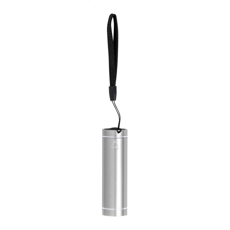 Újrahasznosított alumínium zseblámpa 1 LED-del és hordszíjjal.