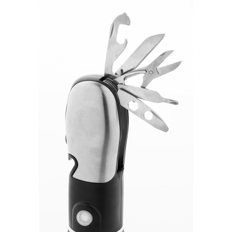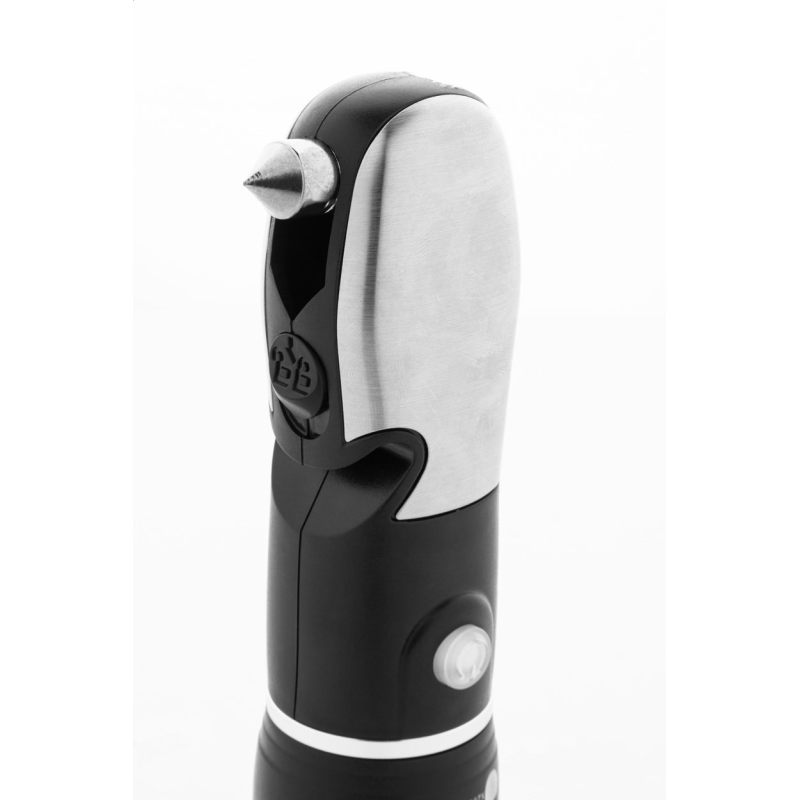 ABS-ből és rozsdamentes acélból készült multifunkcionális zseblámpa vészkalapáccsal, biztonsági övvágóval és multiszerszámmal, 9 funkcióval.