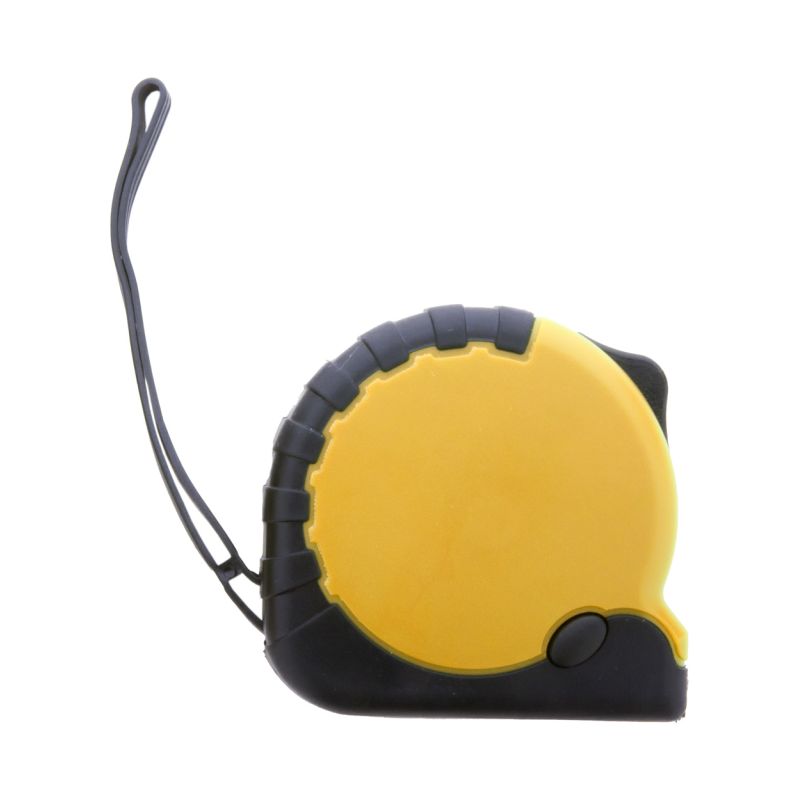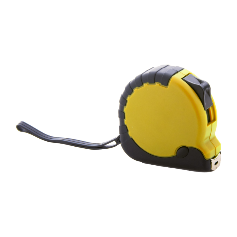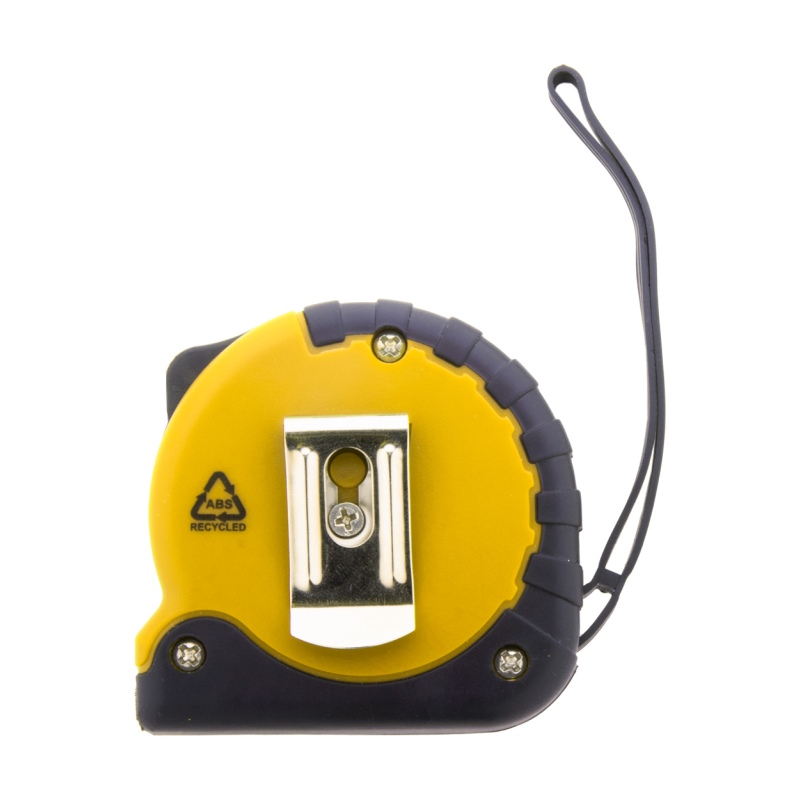 Újrahasznosított ABS műanyag mérőszalag fékező funkcióval, fém klipsszel és csuklópánttal, 5 m.